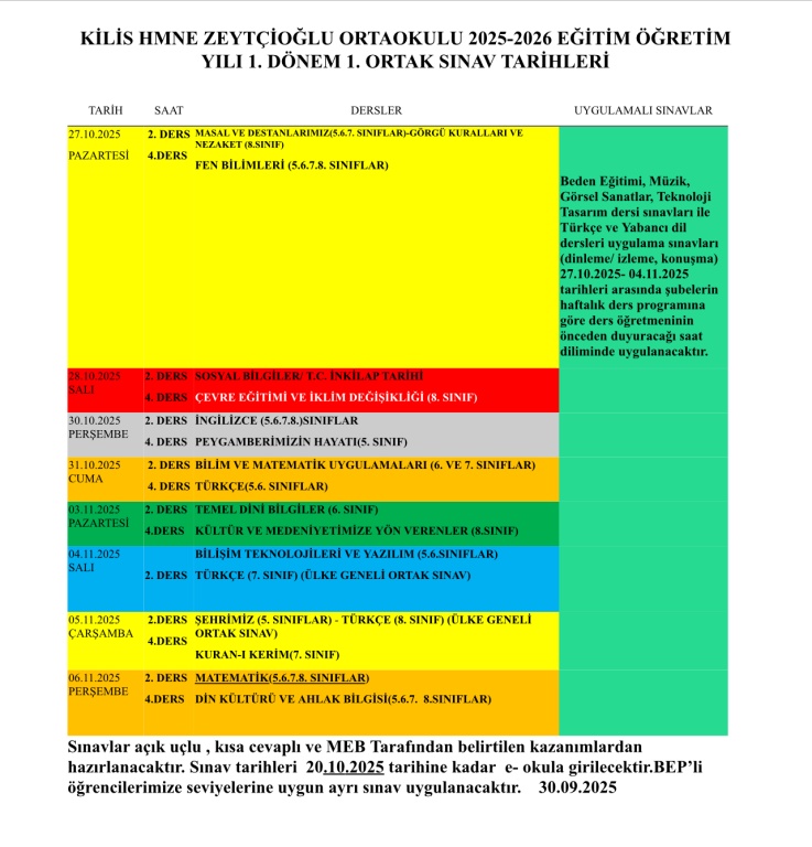 2025-2026 Eğitim Öğretim Yılı 1.Dönem 1. Ortak Sınav Tarihleri için tıklayınız.